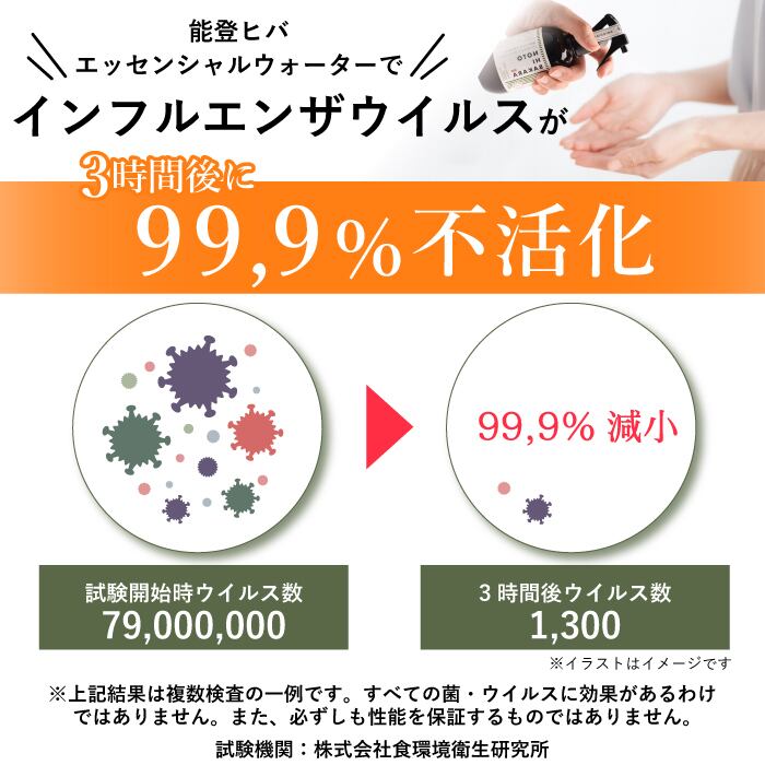 除菌・除ウイルス・消臭成分を含み、リラックス効果のある能登ヒバの香りが広がることで心地よい環境を作ります。